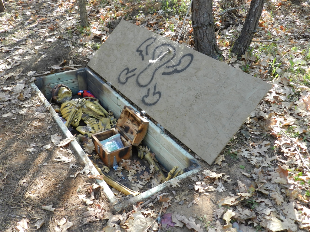 Geocaching friend Sparkyfry had visited what he thought was an awesome geocache during his visit to Traverse City, MI, back in August of 2011. Captain Kidd's Treasure (GC1WKE4) by GeoPirates....ARRGH!, located just south of Traverse City about 10 miles, is a pirate themed geocache that is the cream of the crop in geocaching terms. Sparkyfry insisted that I would get a kick out of it, not just because of how fun and out of the ordinary it is, but because it had an amazing similarity to a geocache that I had once hidden, Halloween 2008 BONUS: Coughin Up A Lung (GC1H32A), back in 2009. If you search flentje.com, you will find out more about my geocache. But in the meantime..
