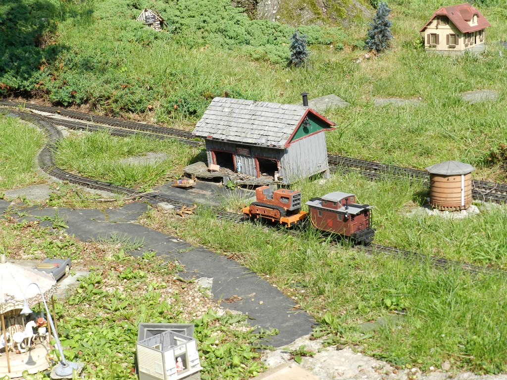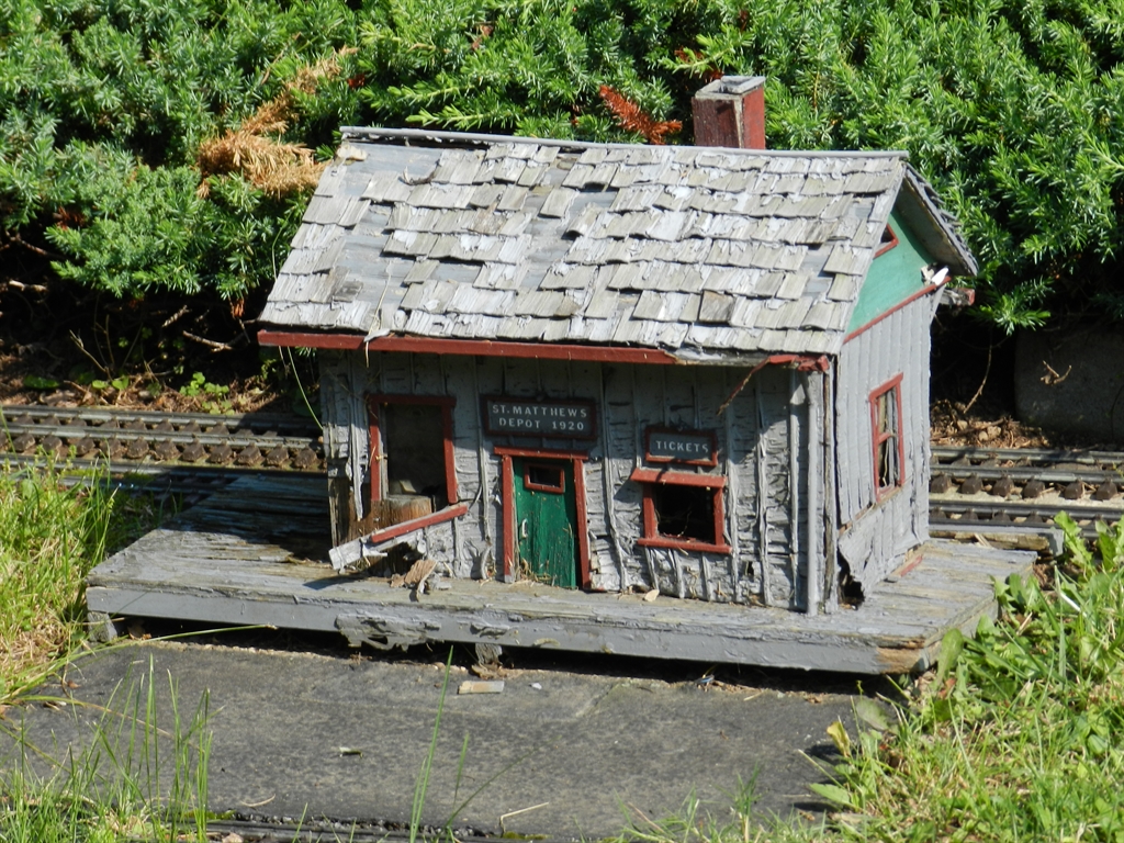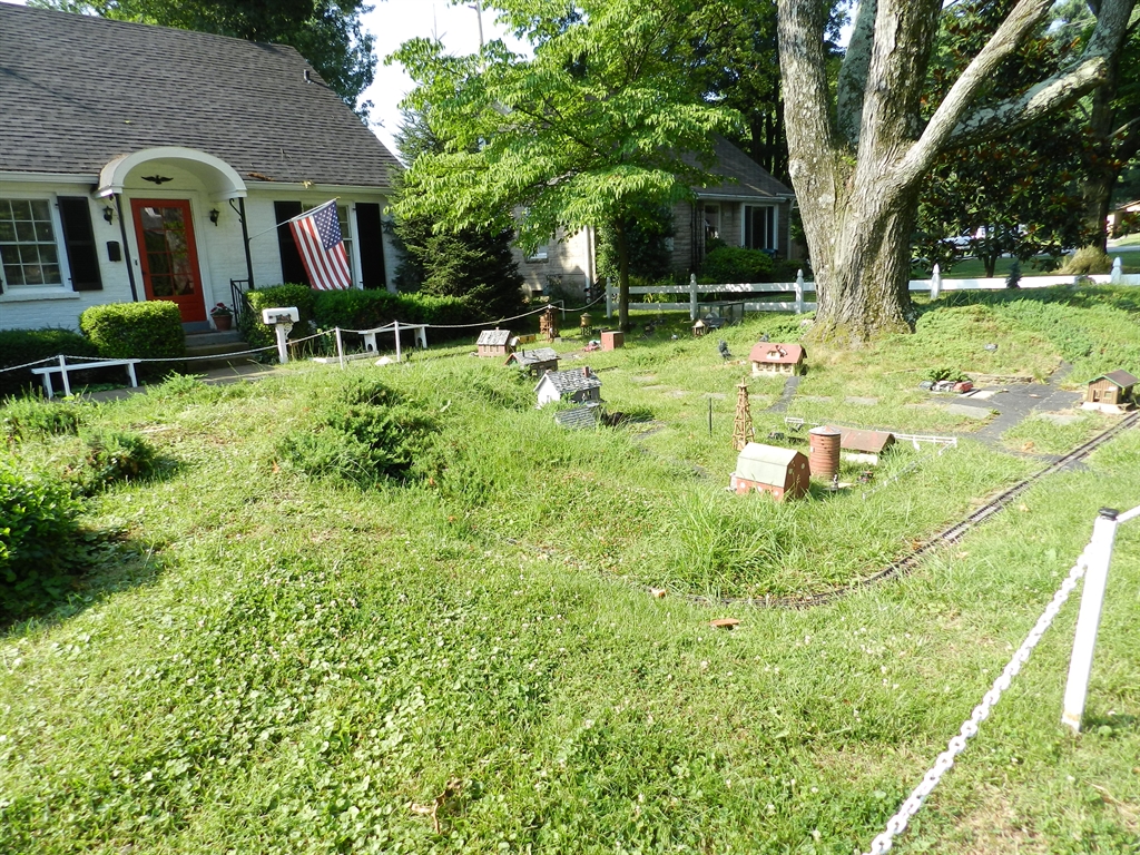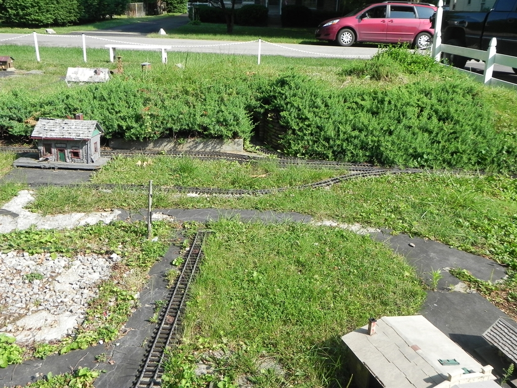 On a recent pass through Louisville, KY, quite unintentionally, we discovered the Plymouth Railroad. The PRR is a "G" scale model railroad layout that has been built into the front, side and back yard at the home of an old railroad buff. The layout contains many elements such as life-like scenes, tunnels, etc. Unfortunately, the PRR is no longer being maintained as according to the owner's wife, the owner of the PRR is now suffering from physical issues keeping him from the yard.