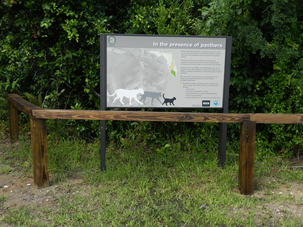 Alligators, snakes, panthers, mosquitoes, the heat, and many other dangers lurk here, any of which can really ruin your day. Even having hiked the swampy side of the park, the only issues we encountered during our hike were the swarms of mosquitoes and the heat. Once we checked out of the park and explored further south, we finally encountered a 10' long man-eating gator.