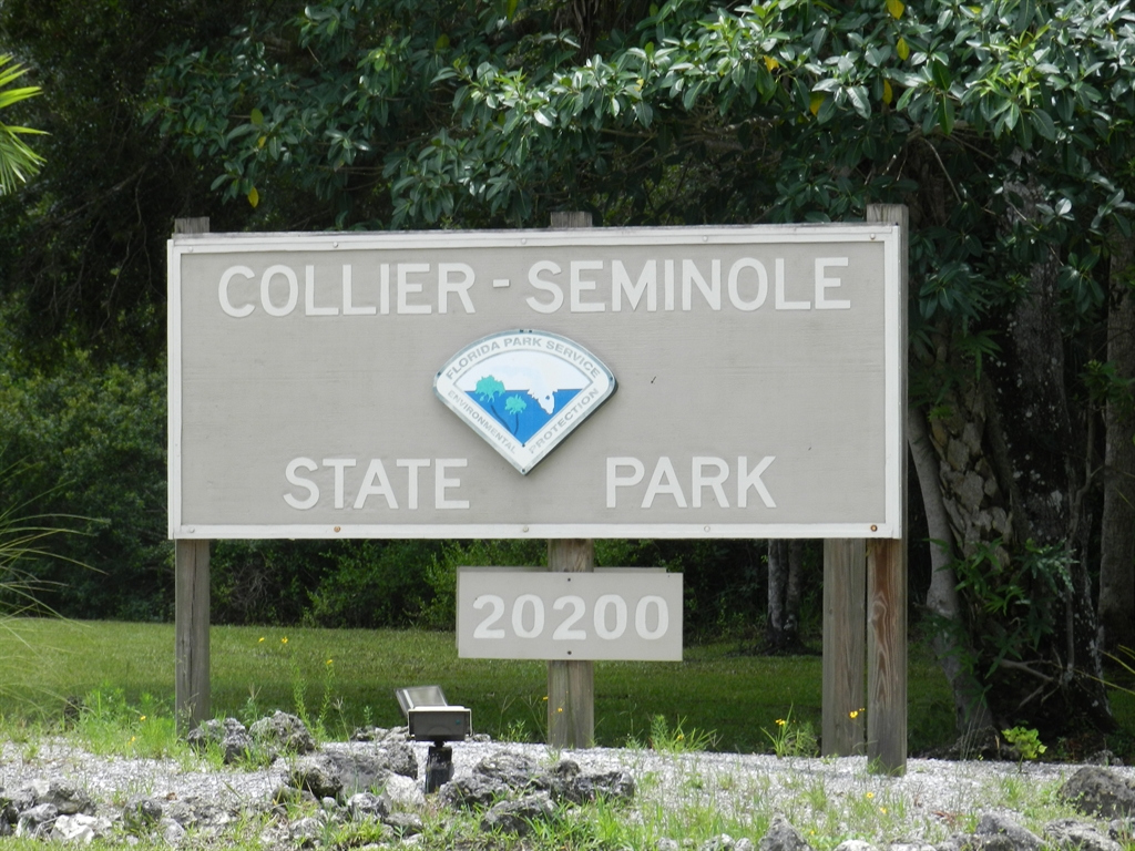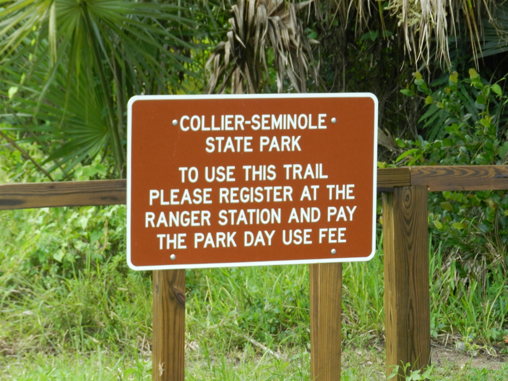 We finally managed to accomplish our goal, which is to hike Collier-Seminole State Park to find Florida's oldest active geocache. Located near Naples, FL, this was the southern most point on our excursion. For those of you that don't understand Florida geography, Naples is located on the northwestern corner of the everglades. There are so many dangers in this park that you are required to check in at the ranger's office, even for a day hike.