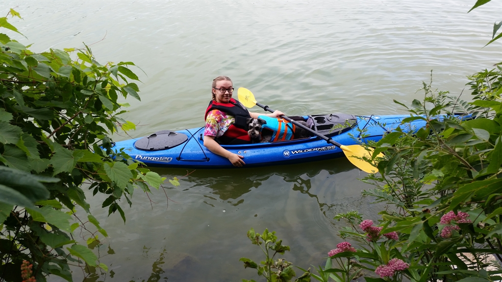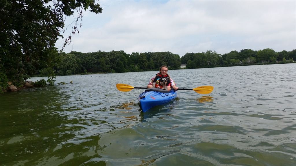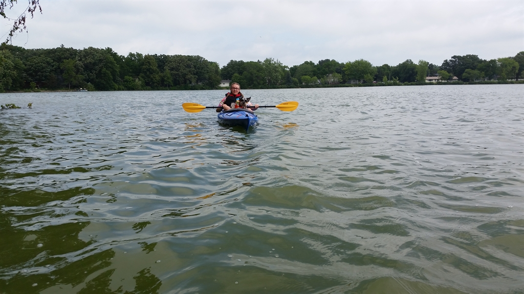 The family was in Waseca, MN for the weekend camping. Molly, Teddy the Schnoodle, and I peeled away from camp with the kayaks to paddle Loon Lake. We navigated the boats around an unnamed island for exploration.